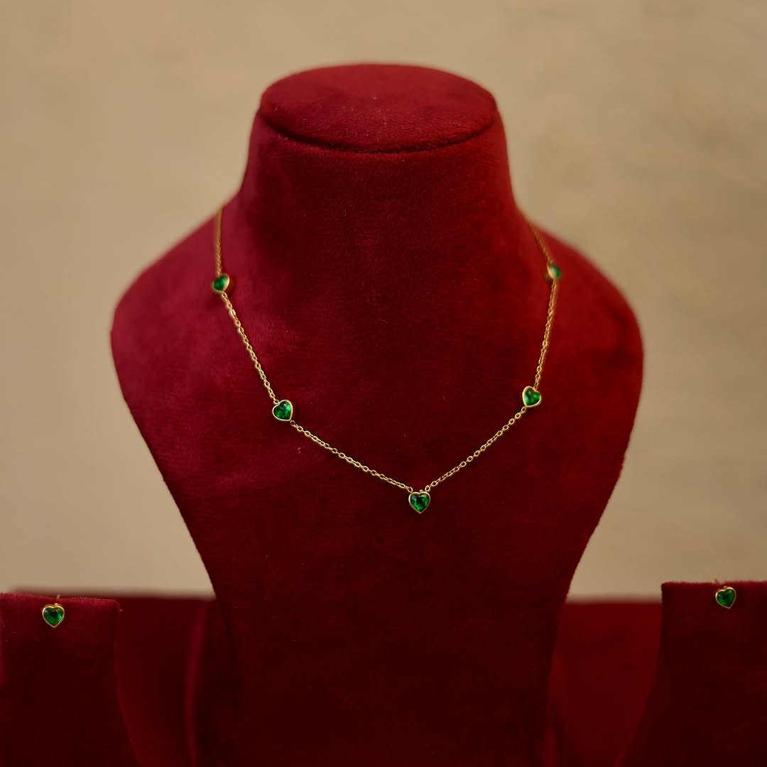 The Emerald Love Set is where sophistication meets romance. Designed with deep emerald tones that radiate richness and allure, this set is a statement of classic beauty. Its carefully crafted details bring out the perfect balance of luxury and grace, making it an unforgettable addition to your jewellery collection.