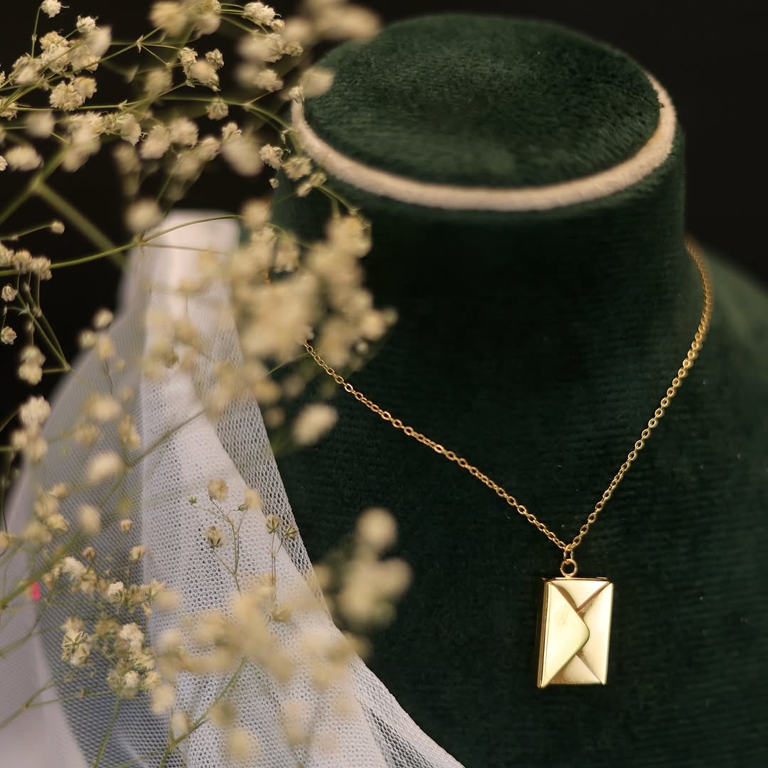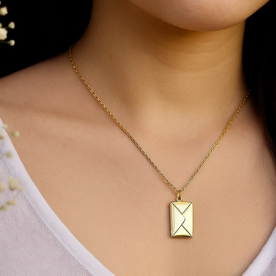 Add a touch of elegance and sentiment with the Golden Envelope Locket Necklace โ a keepsake youโll cherish forever.