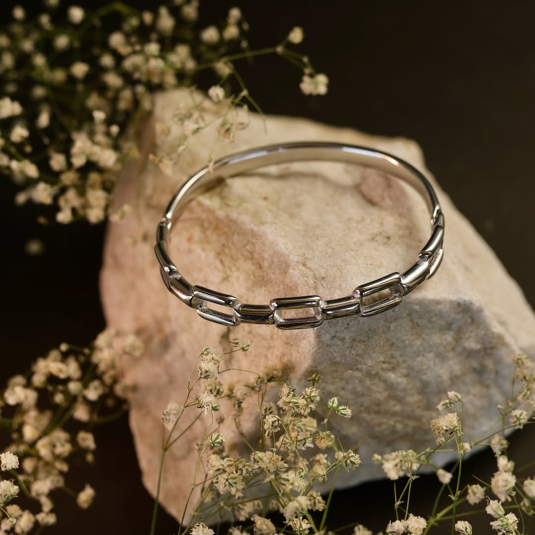 Every link in this bangle is more than just a design element; it symbolizes connection โ of style with confidence, of simplicity with grace, and of you with your most authentic self. Lightweight yet luxurious, itโs made to be worn effortlessly all day, whether youโre in a casual brunch outfit or a chic evening look.