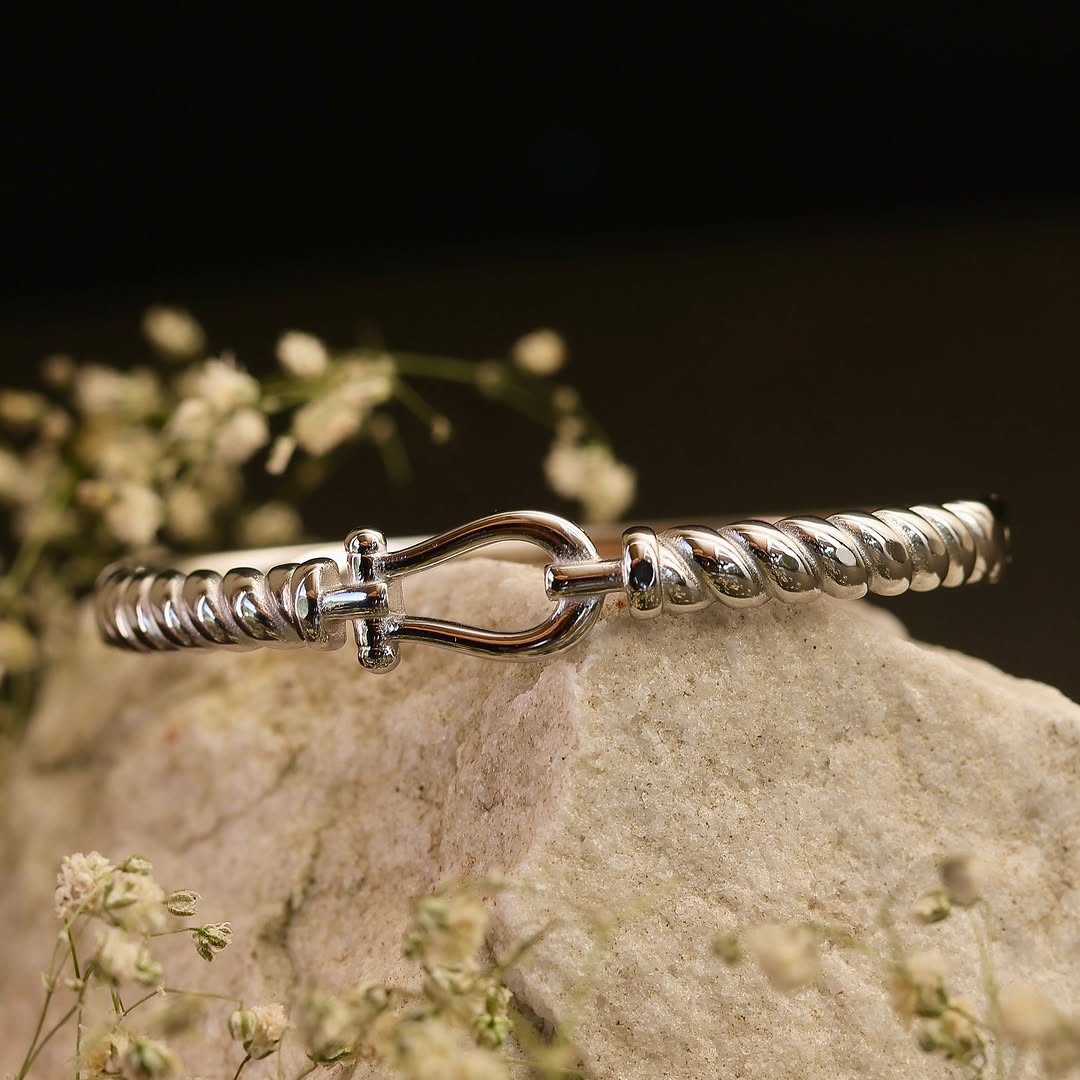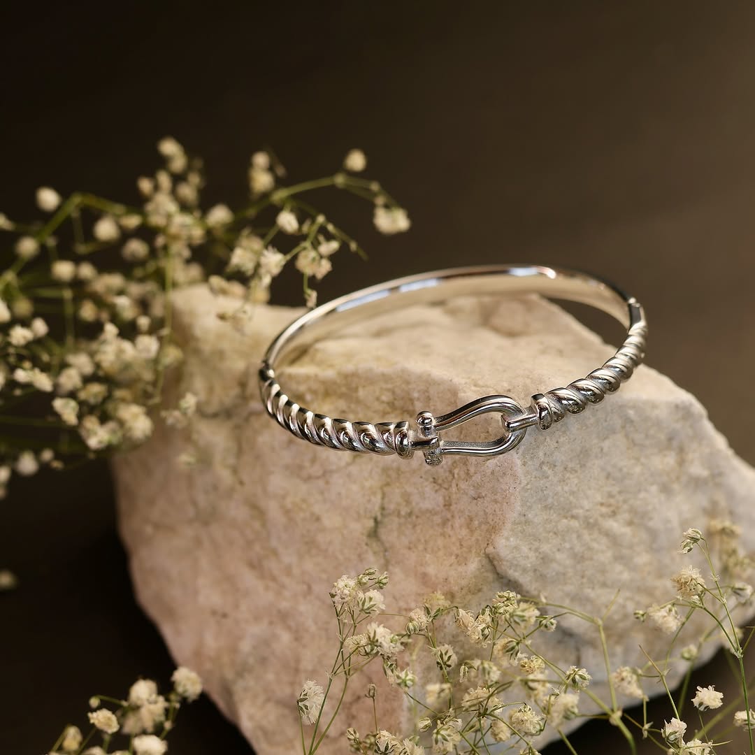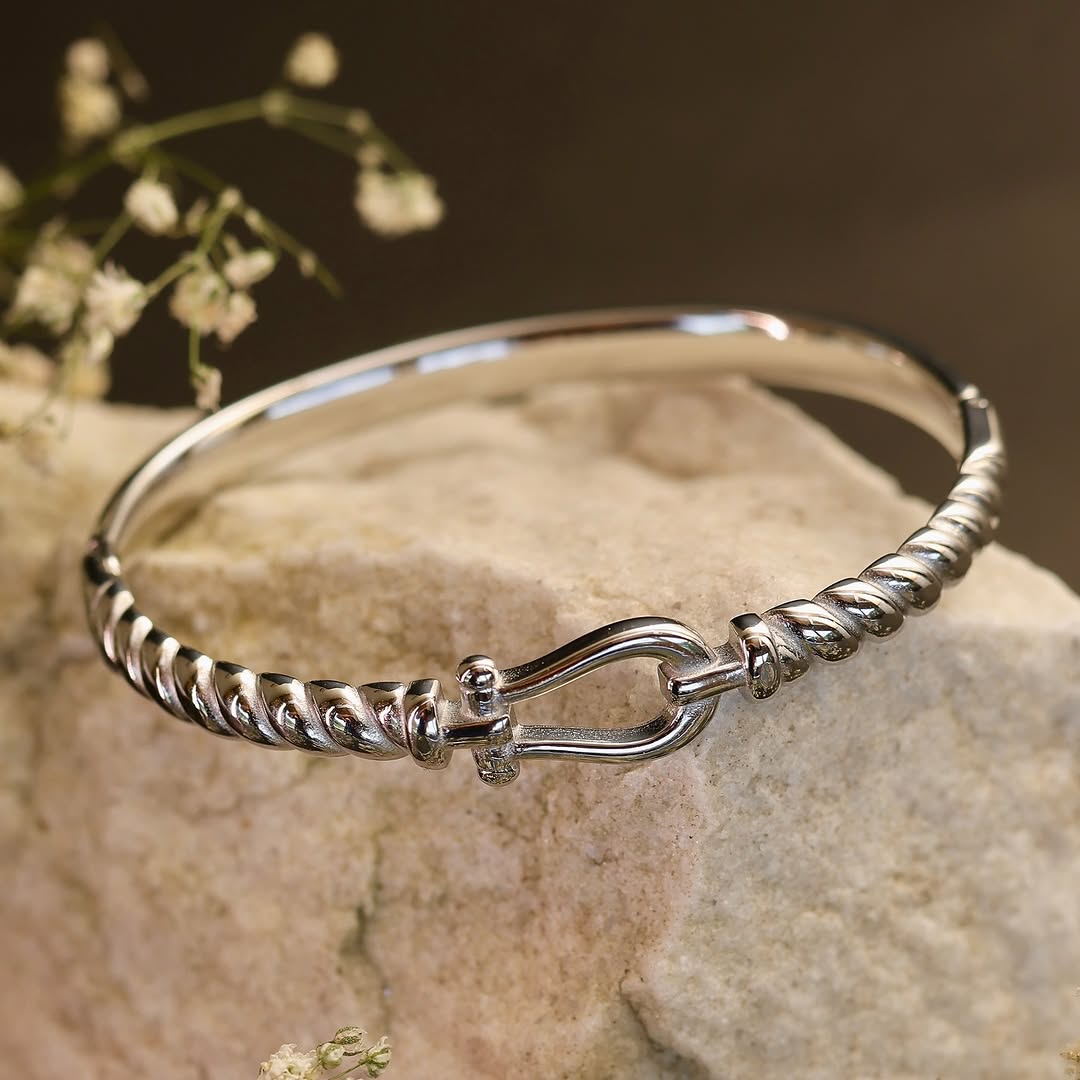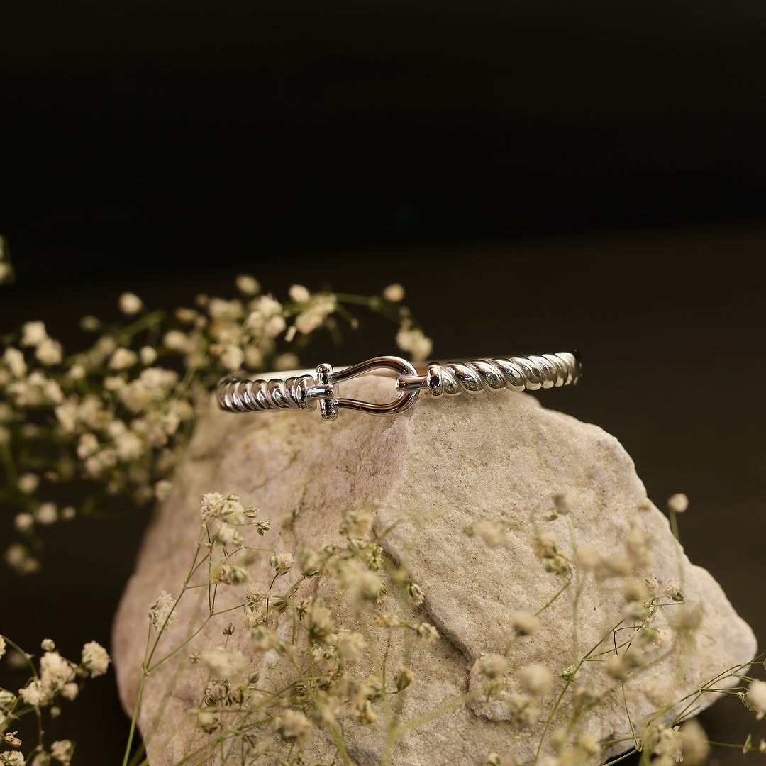 Its unique clasp detail adds a contemporary edge, while the polished silver tone ensures a timeless appeal. Lightweight yet durable, this bracelet is perfect for everyday wear and special moments alike โ a true balance of elegance and strength.